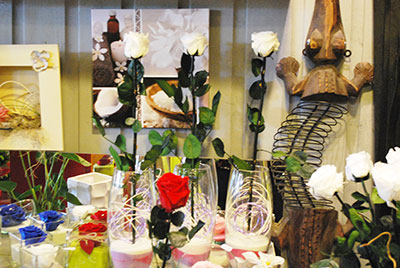 Vente d’objets de décoration (Art du Monde), idées cadeaux, et créations durables en fleurs stabilisées